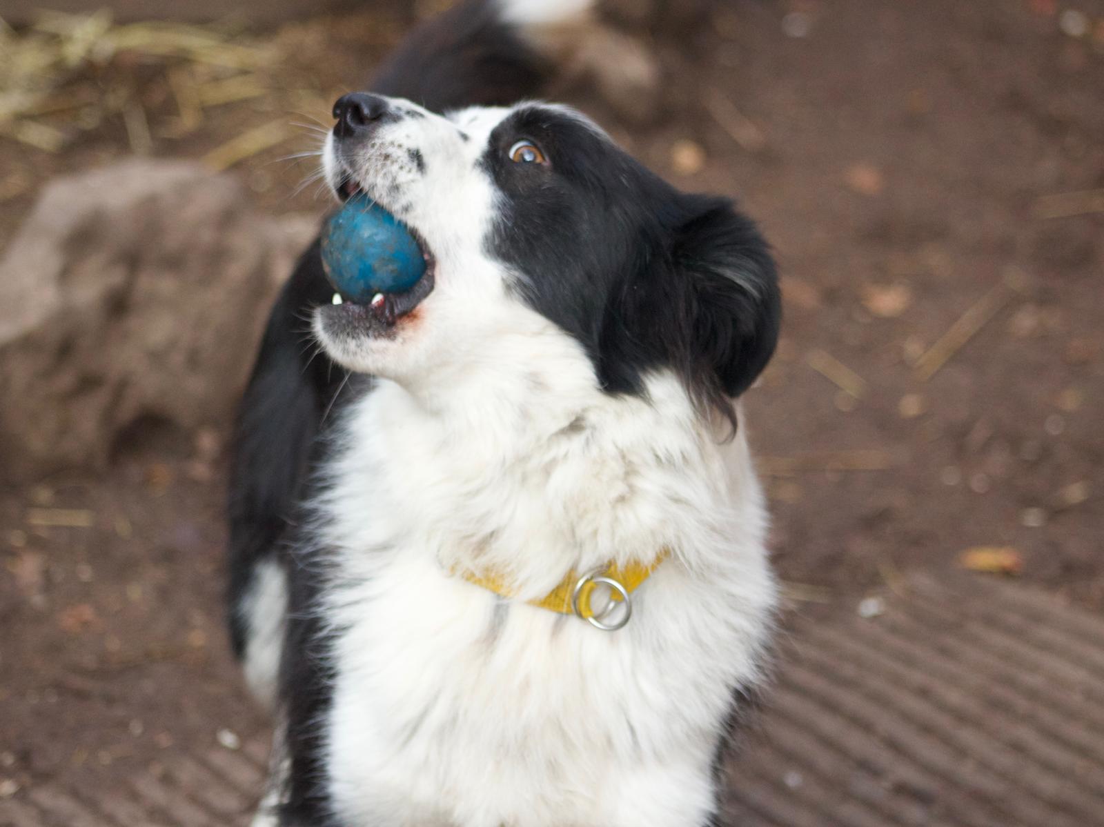Barni liebt Leckerlis über alles, arbeitet gern mit Futterbällen und Intelligenzspielzeug und wäre beim Apportieren sicher mit Begeisterung dabei.