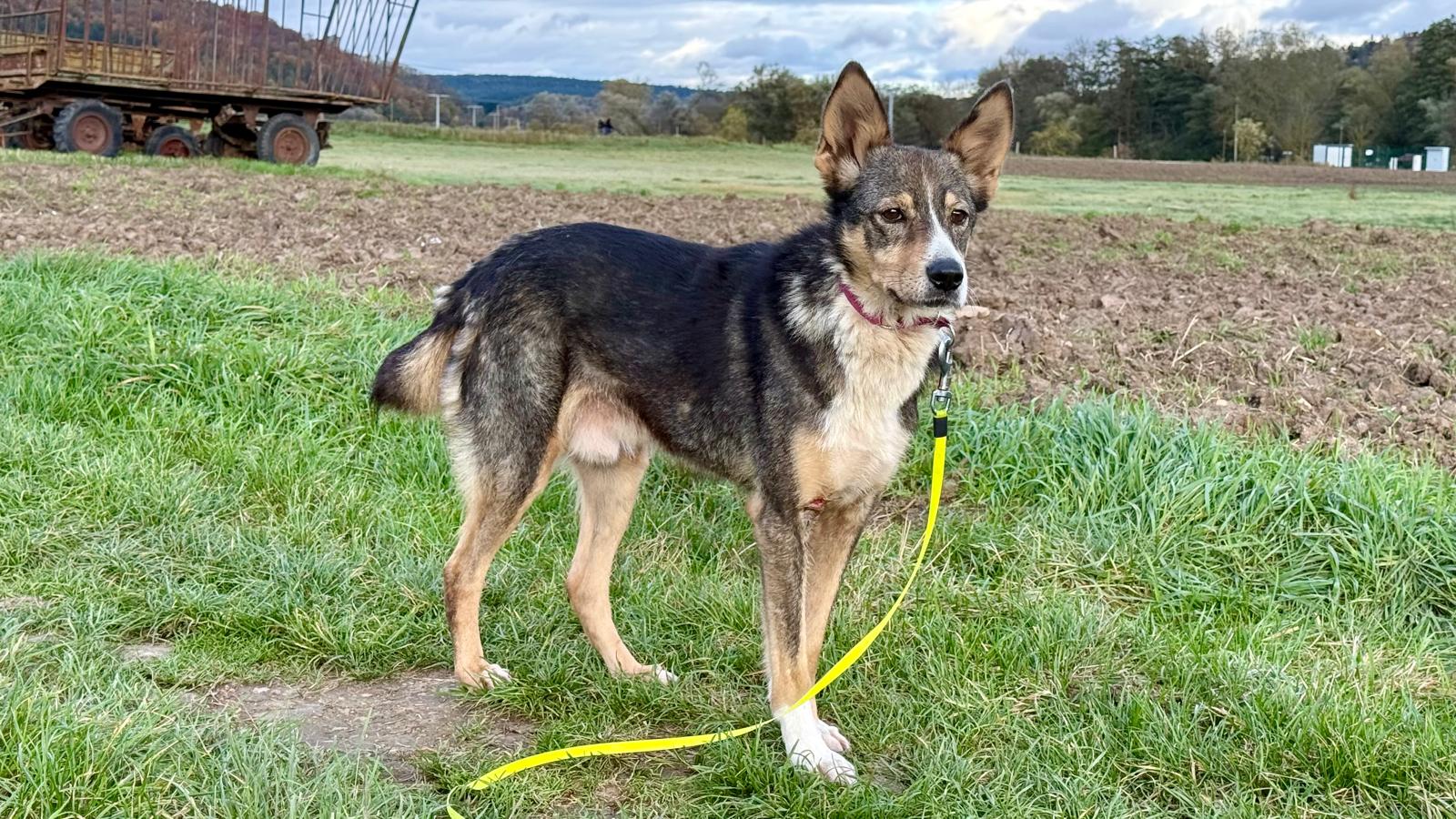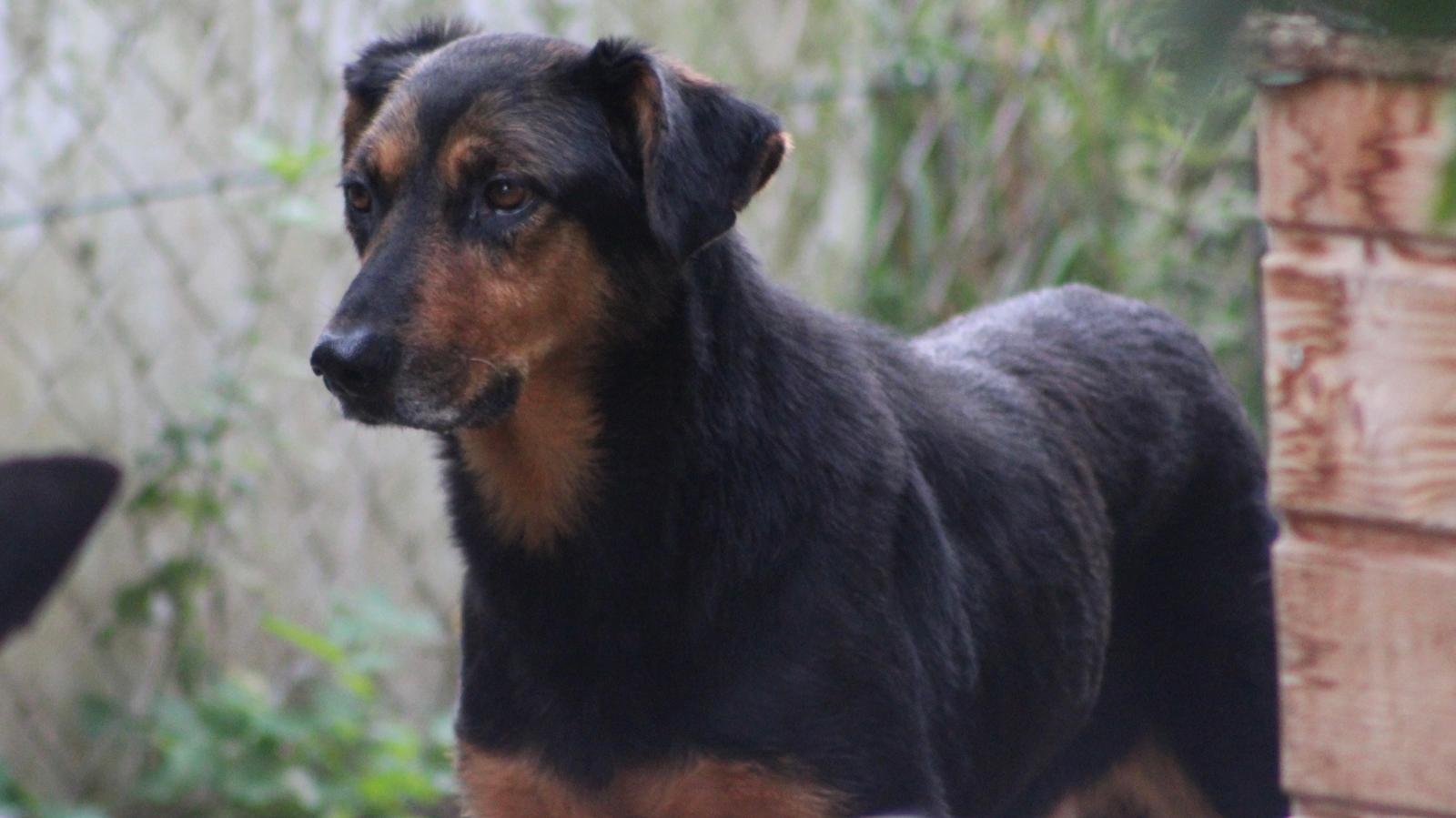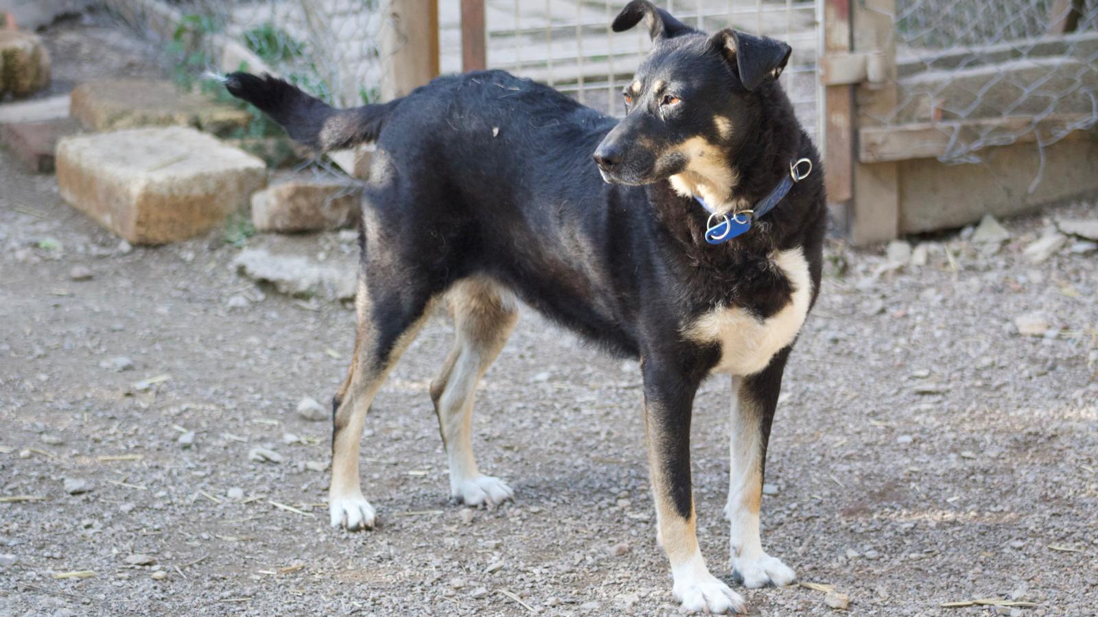 Er verbrachte ganze fünf Jahre im rumänischen Tierheim und kam mit gerade einmal 24 kg nach Deutschland – ausgezehrt, aber mit ungebrochenem Lebenswillen. Inzwischen hat er sich gut erholt, wiegt aktuell 34 kg, und wird bei guter Pflege ein Endgewicht von ca. 40–45 kg erreichen.