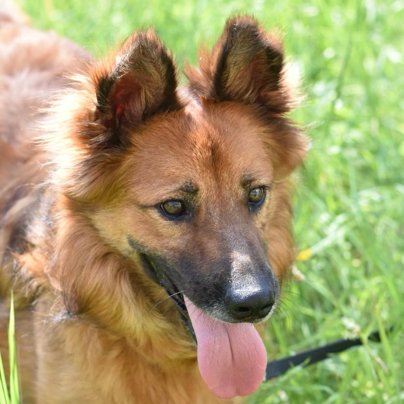 Kenai ist bereits 7 Jahre alt, aber voller Lebensfreude und typisch schäferhundmäßig: wachsam, sensibel, loyal. Er ist verträglich mit anderen Hunden, dabei eher defensiv als fordernd, kann aber in Stresssituationen auch mal distanzlos sein. Katzen, die hundeerfahren sind und nicht flüchten, sind für ihn okay. Auch Hühner oder andere Hoftiere, kennt er und läuft friedlich an ihnen vorbei.